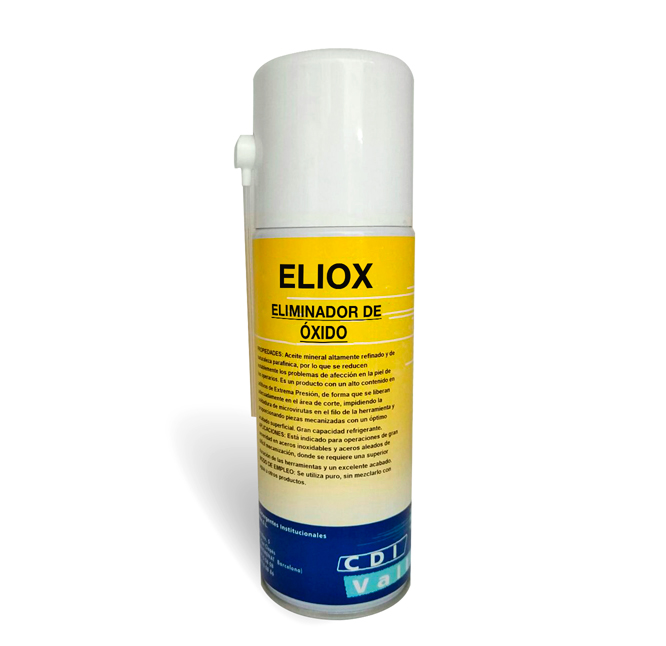 ELIOX 101 es un activo agente eliminador de óxido y moho. Producto de carácter ácido, aplicable a un gran número de elementos metálicos. Limpia, desengrasa, desoxida y pasiva en una sola operación rebajando los costes y simplificando el tratamiento. Deja unos perfectos acabados, pasivando microscópicamente las superficies tratadas.